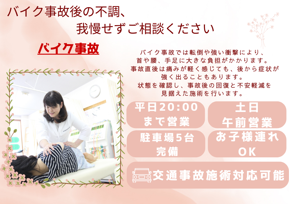 さくら整骨院では、バイク事故後の施術を